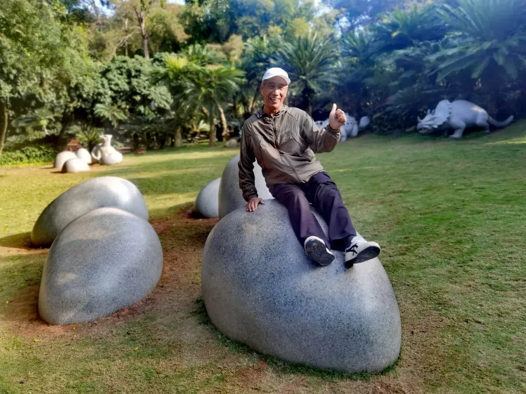 进青秀山玩那天,遇着一位保洁工,正拿着长扫帚清扫落叶。问她:这步道走下来,一圈多少公里?她对答如流:大约八九公里。再问千年苏铁园怎么走,她便放下手里的活计,细细地说,又指着远处:“过了那座桥,往左拐,先看苏铁园,再往前走就是恐龙雕塑园,孩子们都爱去。”她的脸被太阳晒得黝黑,笑容却格外亮堂。下午在南湖公园,又遇见一位保洁员,正修剪花枝。我们指着一种开成绣球模样的红花问花名,她便来了兴致,放下剪刀,滔滔不绝起来:“这是非洲芙蓉花,原产地在东非,花朵倒垂,像灯笼,又像绣球,你们看这花瓣……”她讲得那样投入,知识又是那么丰富,仿佛不是保洁员,倒像是植物园的讲师。