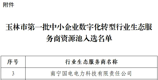 喜报|南宁国电成功入选玉林市第一批中小企业数字化转型行业生态服务商资源池