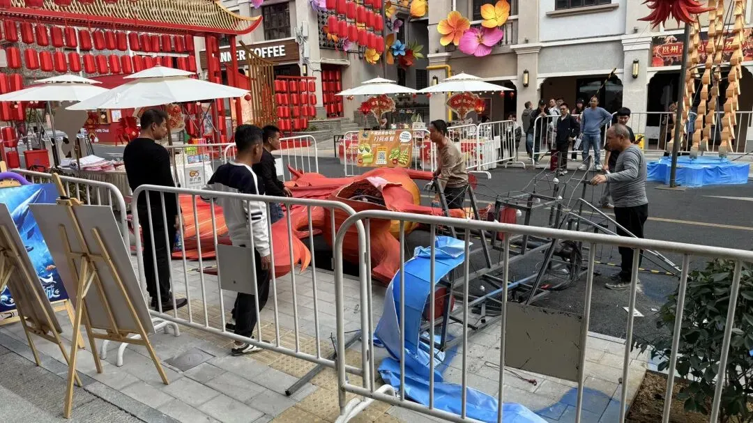 不过等我掉头走回来的时候,那个龙马精神图腾的“马”,就已经被工作人员拆下来了……