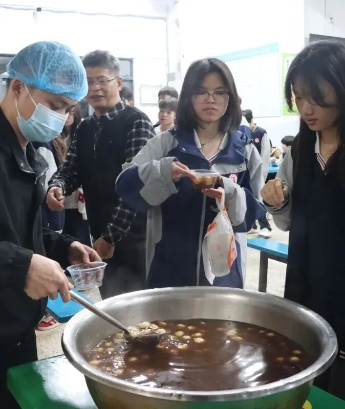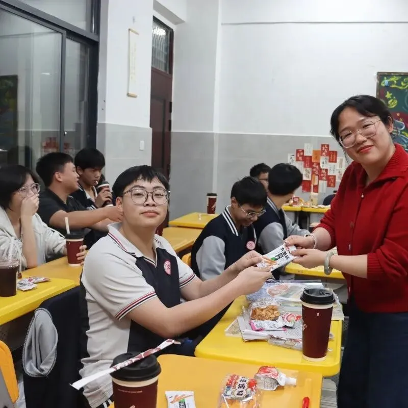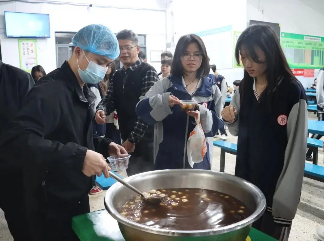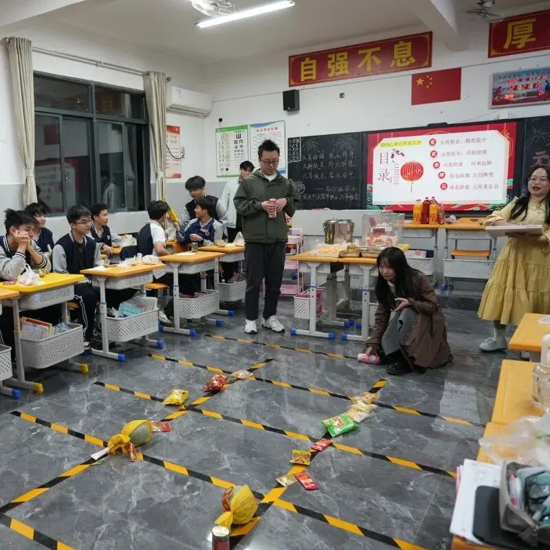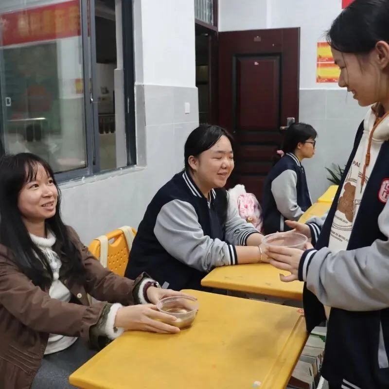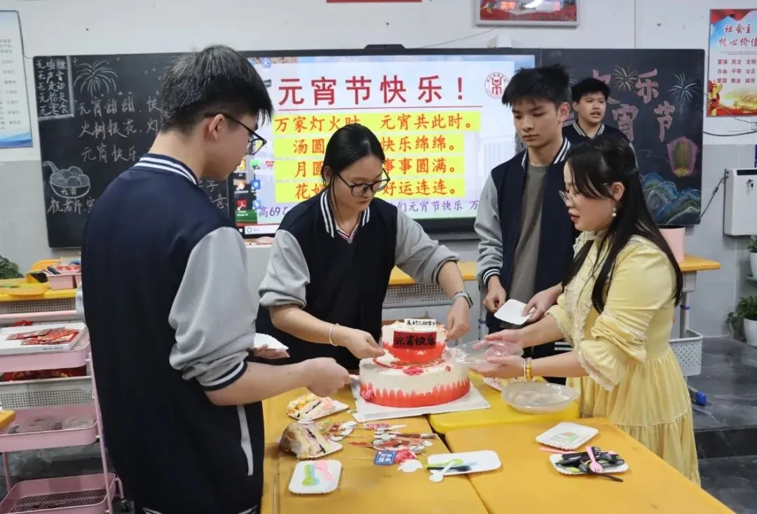 在各个班,学生们特意为老师们送上亲手端来的汤圆(尽管已吃过,但仪式感十足)、蛋糕和节日的祝福。“老师,谢谢您的陪伴,这碗汤圆代表我们的感谢。”一声声真诚的感谢,让这个元宵夜充满了温暖与敬意。