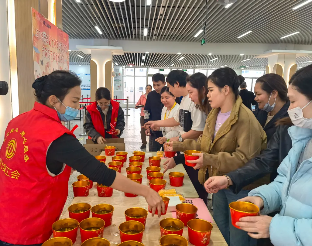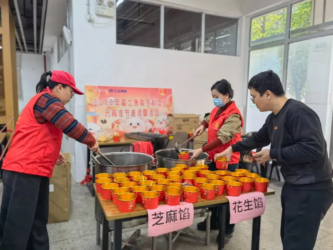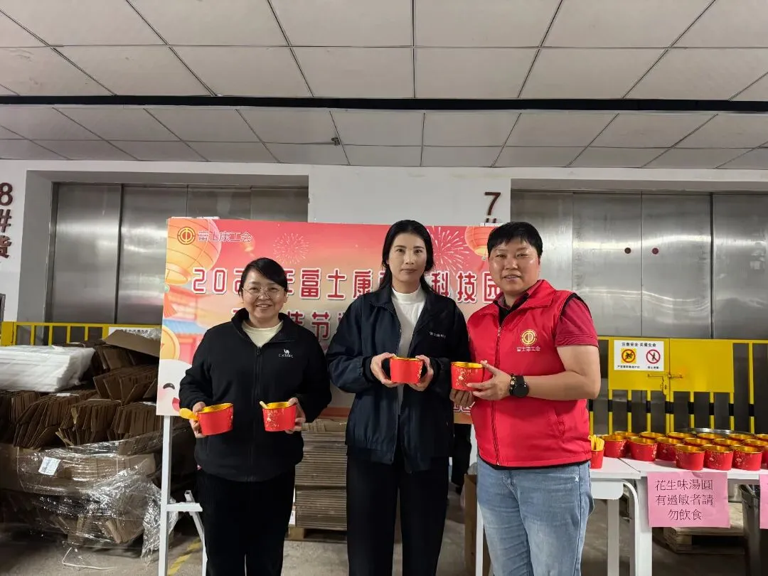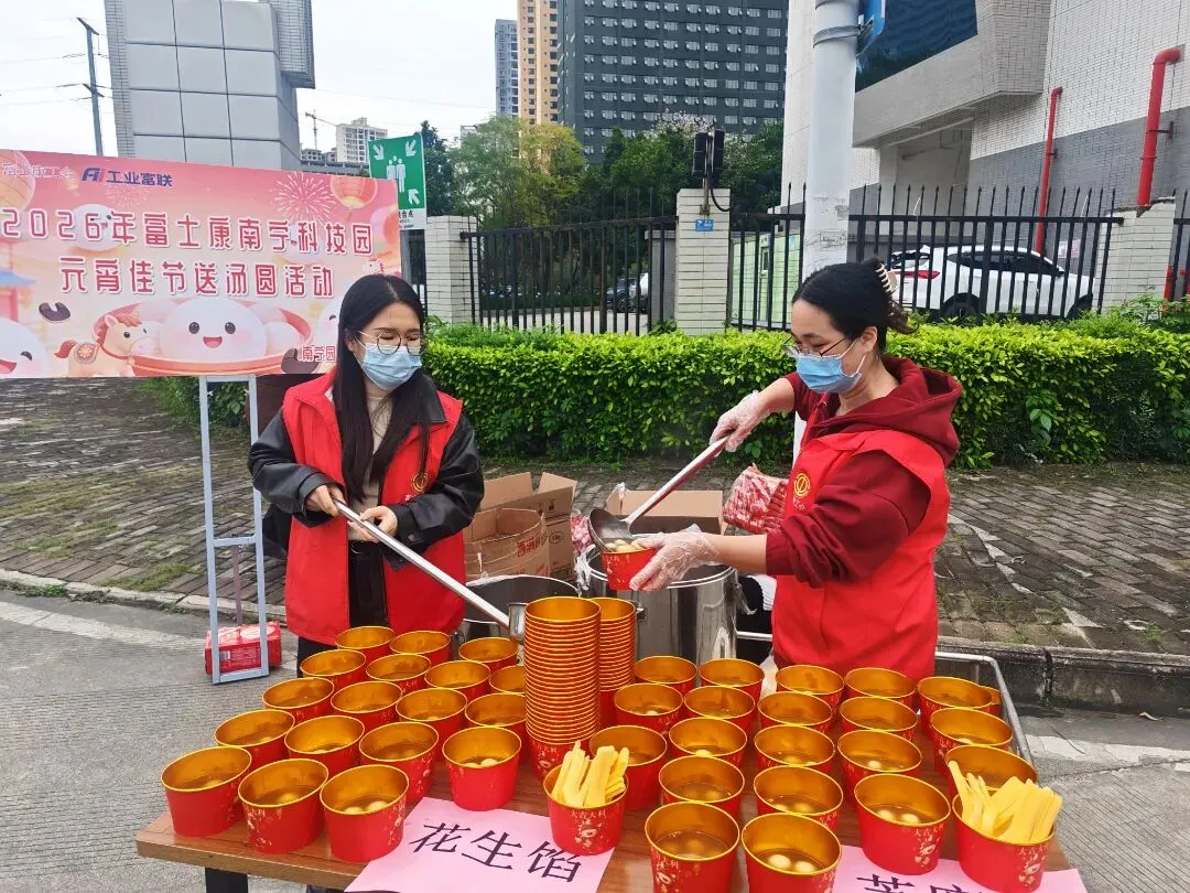 此次活动在沙井园区B26餐厅、B21餐厅、南门及富宁厂区6楼同步开展。考虑到员工工作与就餐时间不同,园区工会安排了中午、晚上两场派送,累计送出汤圆2100余碗,确保不同岗位、不同时段的员工都能收到这份节日心意 。