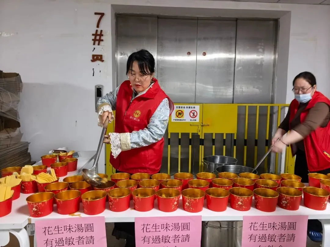 “来来来,趁热吃,元宵节快乐!”活动现场,工会工作人员一边热情招呼,一边将一碗碗刚出锅的汤圆递到员工手中。大家接过汤圆,脸上洋溢着笑容,现场暖意融融。