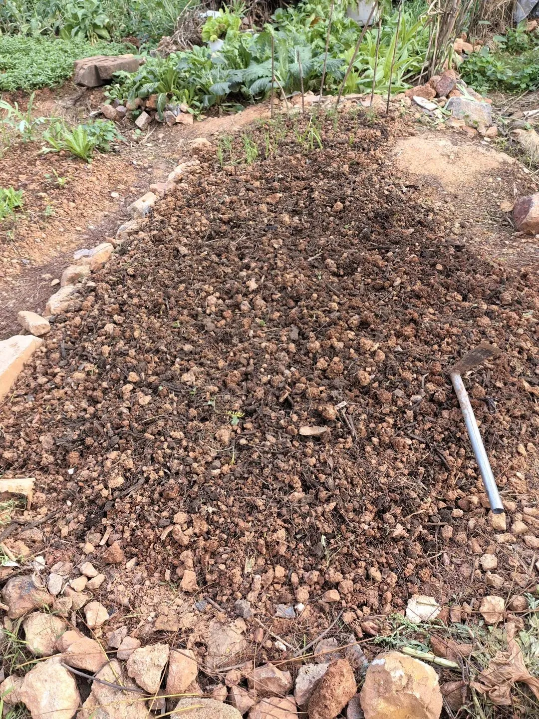 花了一小时终于把粪和土搅拌在了一起,来回捣腾两次,应该差不多了。