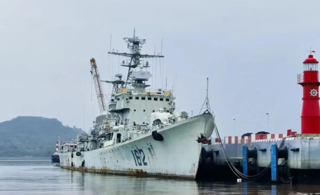 那就是已经退役的老南宁舰,整体为白色,身上印着舷号“162”,外表已有些锈迹斑斑。