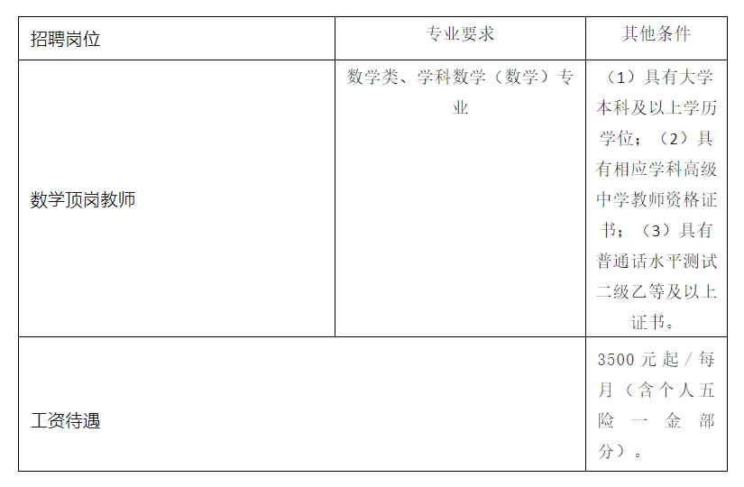 招聘岗位:初中数学教师1名