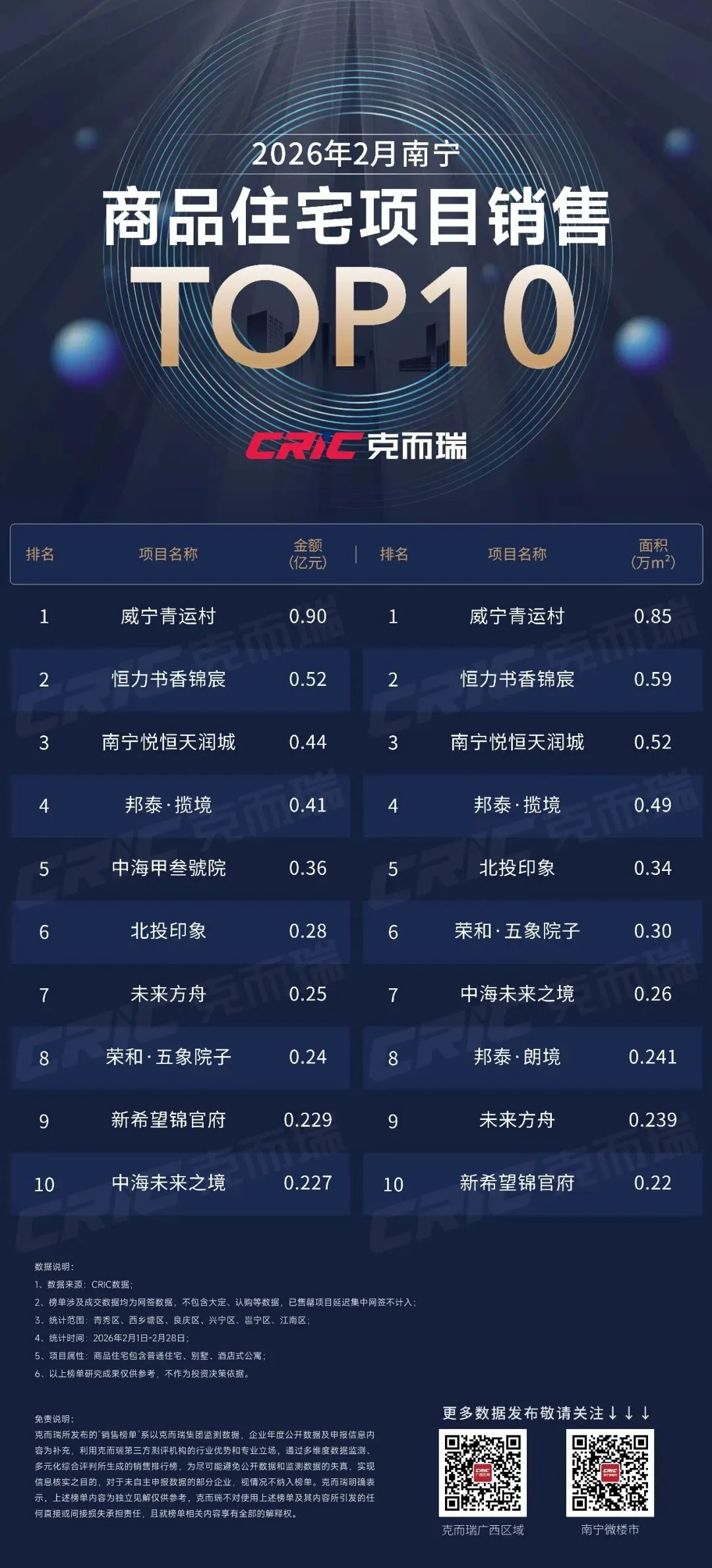2026年2月南宁楼市销售榜