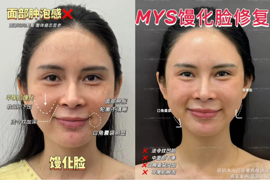01面部过度填充综合征(俗称“馒化脸”)以臃肿扭曲、轮廓丧失、表情僵硬为典型表现。注射填充市场井喷之下,因剂量过量、层次偏差、审美失当引发的馒化现象,已成为医美修复领域的核心挑战。