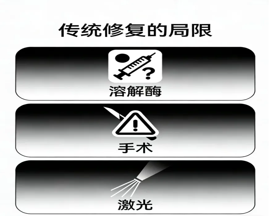 ·手术修复:创伤显著、恢复期冗长、风险偏高;