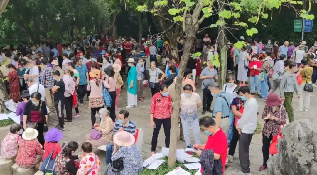 但是我在这个相亲角里面逛了一会,我发现了一个很奇怪的现象,就是相亲角上面的人大部分都是一些中老年人,几乎看不到年轻人。我感到很奇怪,通过以下这张图片就能一目了然了,一眼望去都是一些大妈大爷,可能这些大妈、大叔是替自己的儿子或者是女儿来相亲的,也有可能是为自己找老伴。