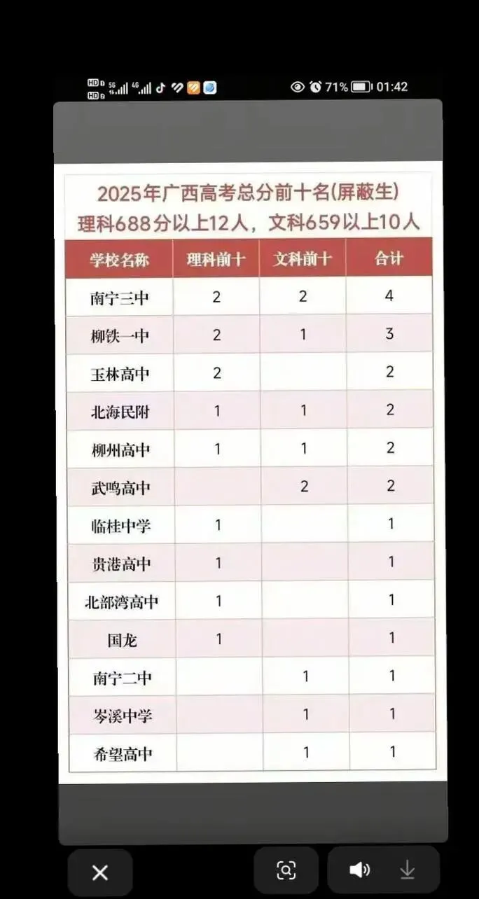 再看柳州那边,柳州高中也不是吃素的。2016年覃煜鑫708分拿下全区理科状元,那是柳州近十年唯一一次站上最高领奖台,整个柳州城都沸腾了。柳铁一中2020年一本上线率89.54%,上线人数1062人,放在全区也是响当当的存在。可到了2025年,当大家把目光投向600分以上人数榜单的时候,南宁二中那个”540”的数字,实在太扎眼了。