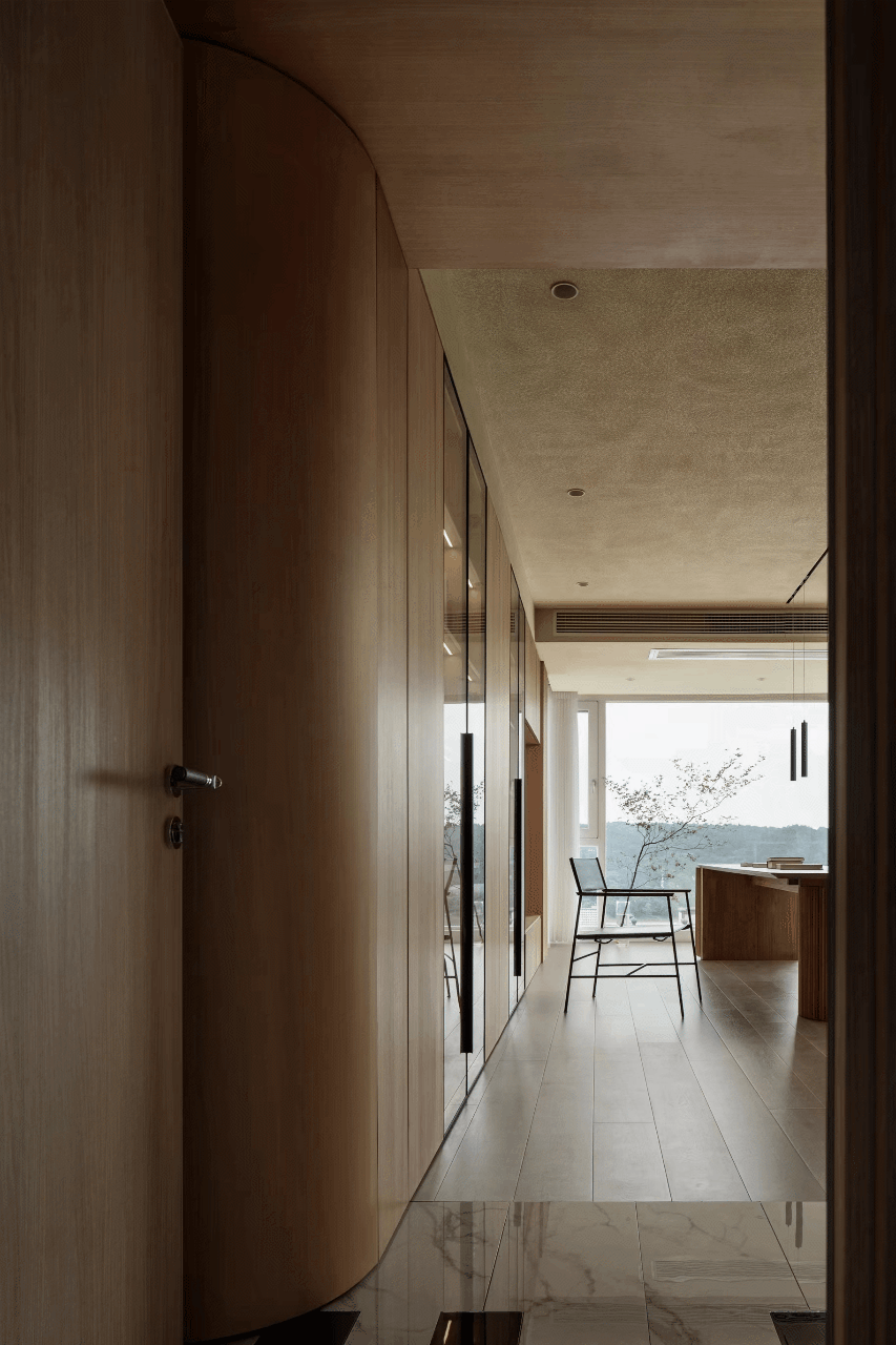大量的天然木质元素,让人最真切地感受到与自然的亲近。依江而居,每年回南天到来时,湿气非常重,因此全屋都使用了艺术硅藻泥。