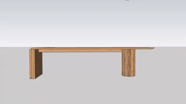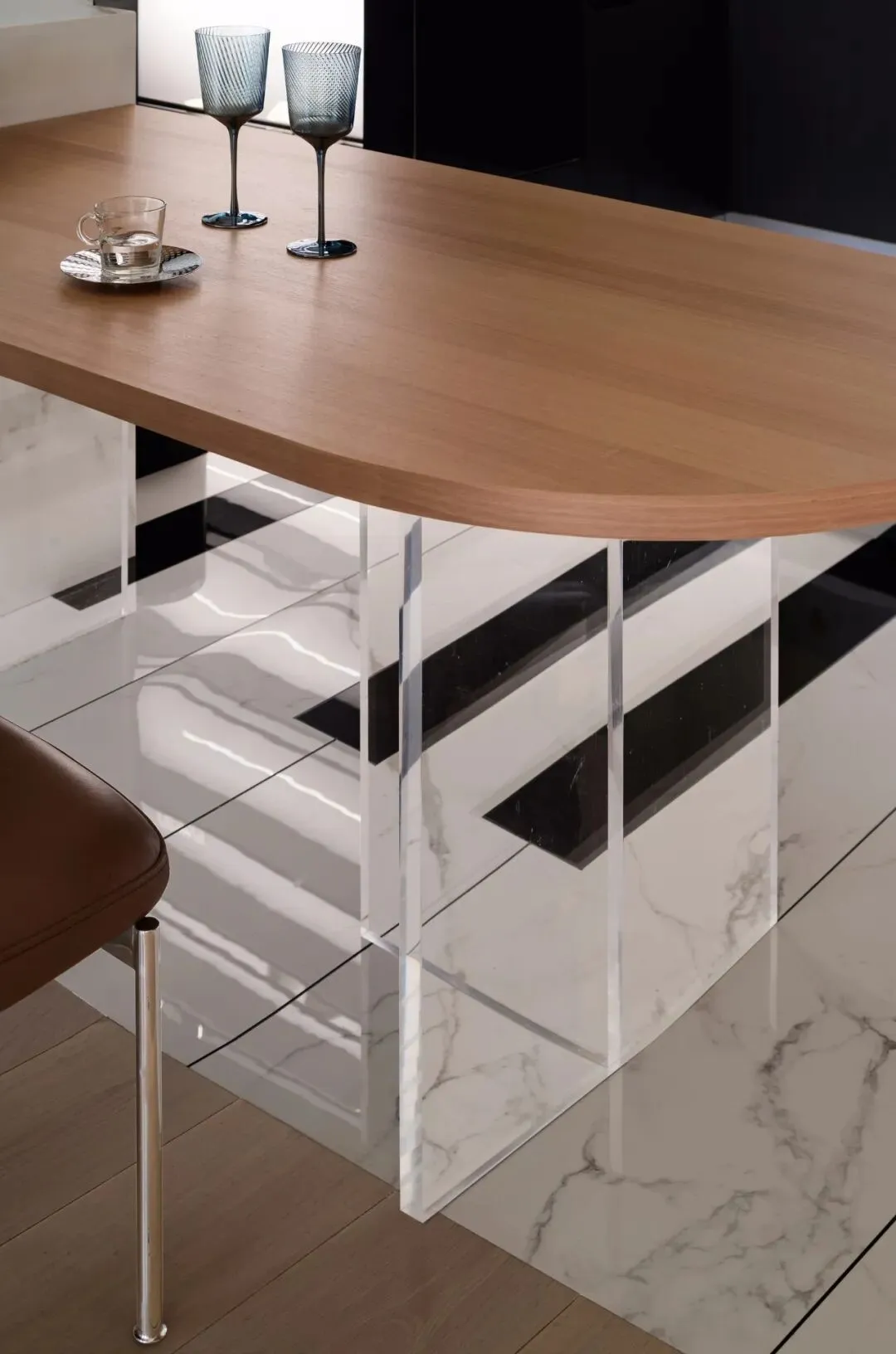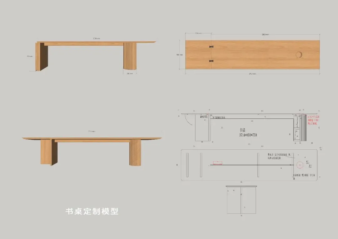 为了让长桌折叠的缝隙不显得那么突兀,设计师采用了中式传统家具的燕尾榫作为装饰性点缀。