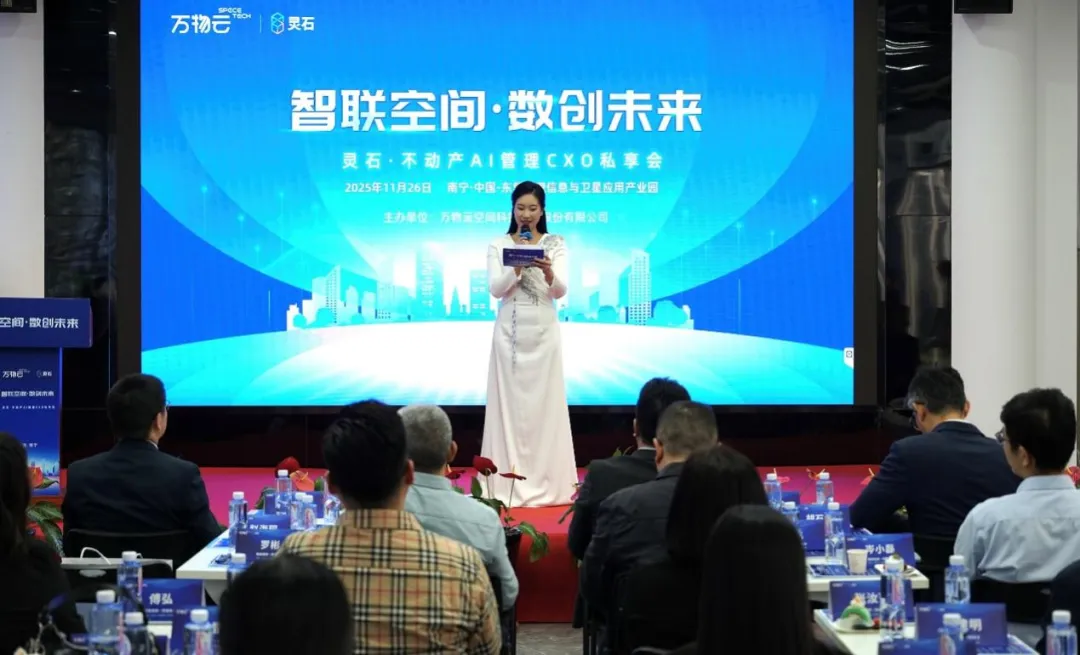 为响应南宁市政府大力发展AI产业、推动数字化转型的战略部署,11月26日,“智联空间,数创未来”灵石·不动产AI管理CXO私享会在中国-东盟地理信息与卫星应用产业园成功举办。