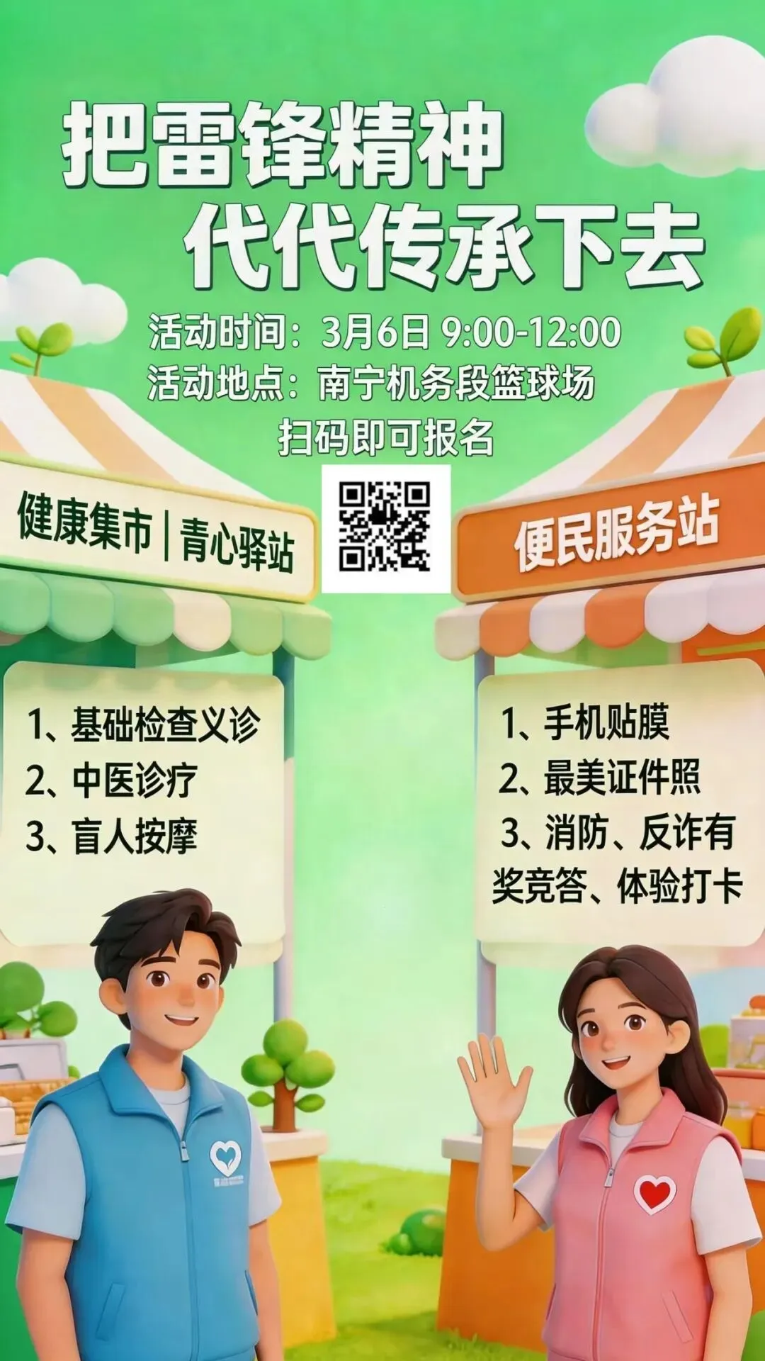 >3月6日,南宁机务段学雷锋便民服务活动预告!