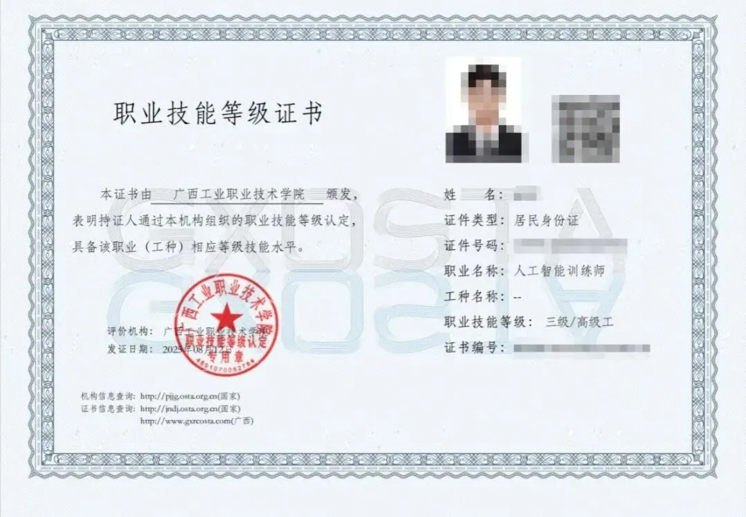 广西人工智能训练师职业技能等级认证开始招生啦!作为广西急需紧缺职业,这证书不仅拿证快,还能申请培训补贴,简直是想入行AI的宝子们的福音💻