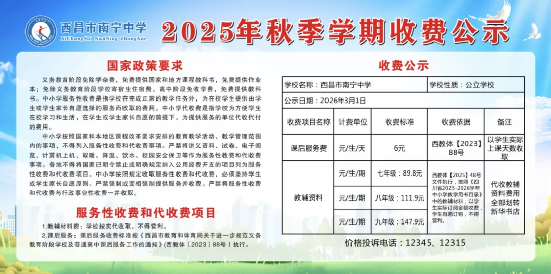 义务教育阶段免除学杂费,免费提供国家和地方课程教科书,免费提供作业本;免除义务教育阶段学校寄宿生住宿费。高中阶段免收学费,免费提供教科书。中小学服务性收费是指学校在完成正常的教学任务外,为在校学生提供由学生或学生家长自愿选择的服务而收取的费用。中小学代收费是指学校为方便学生在校学习和生活,在学生或学生家长自愿的前提下,为提供服务的单位代收代付的费用。