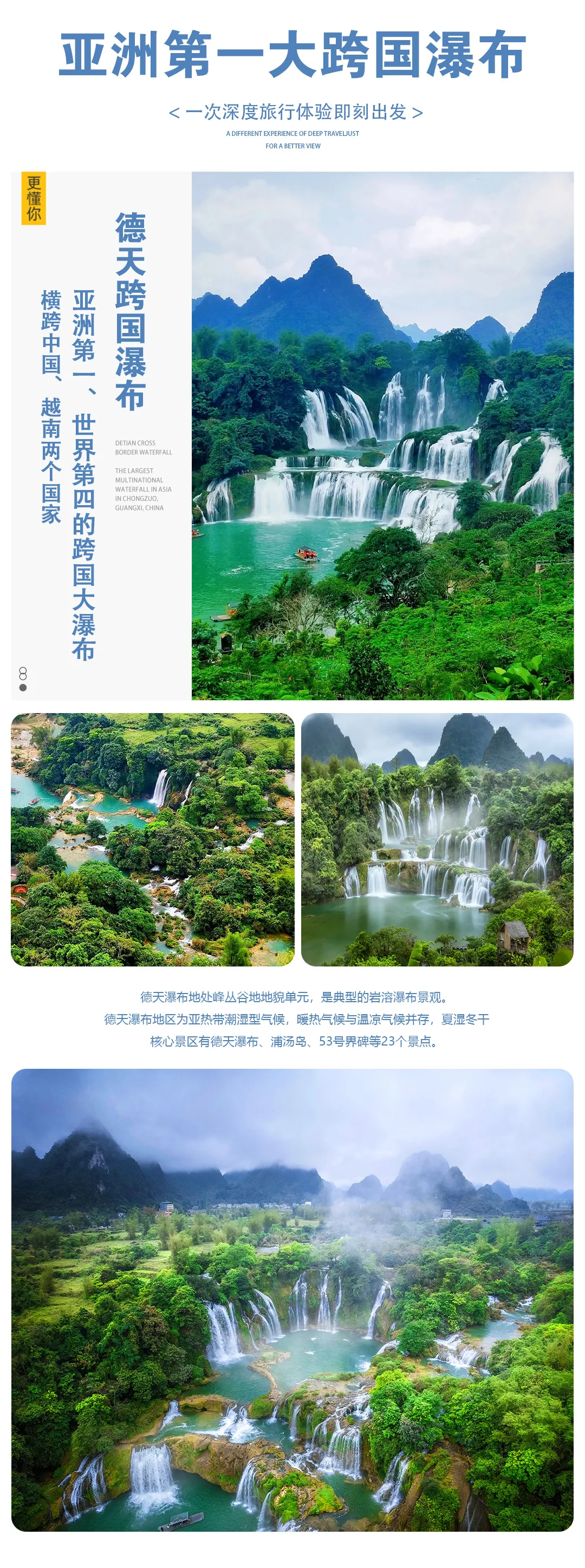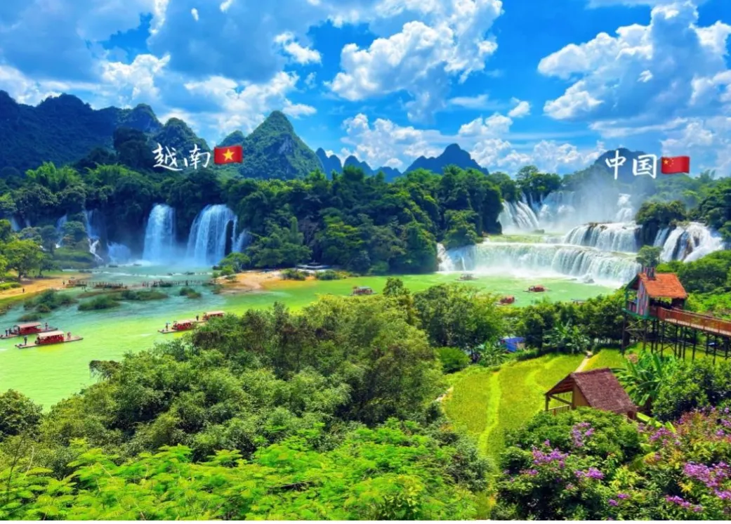 瀑布位于广西崇左市大新县中越边境,中越两国以归春河为界,河的一侧是中国,另一侧是越南.在这里不仅能欣赏大自然奇观,更能感受中越边境异域风情.