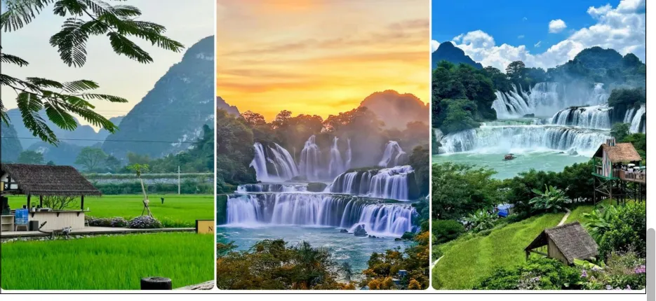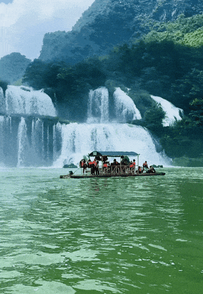 下 午 乘 车 赴 崇 左 【 德 天 瀑 布 】 ( 含 区 间 车 ) 亚 洲 第 一 世 界 第 四 大 跨 国 瀑 布 , 年 均 水 流 量 约 为 贵 州 黄 果 树 瀑 布 的 三 倍 , 所 在 地 地 层 主 要 为 泥 盆 统 白 云 质 灰 岩 , 为 典 型 的 岩 溶 瀑 布 。