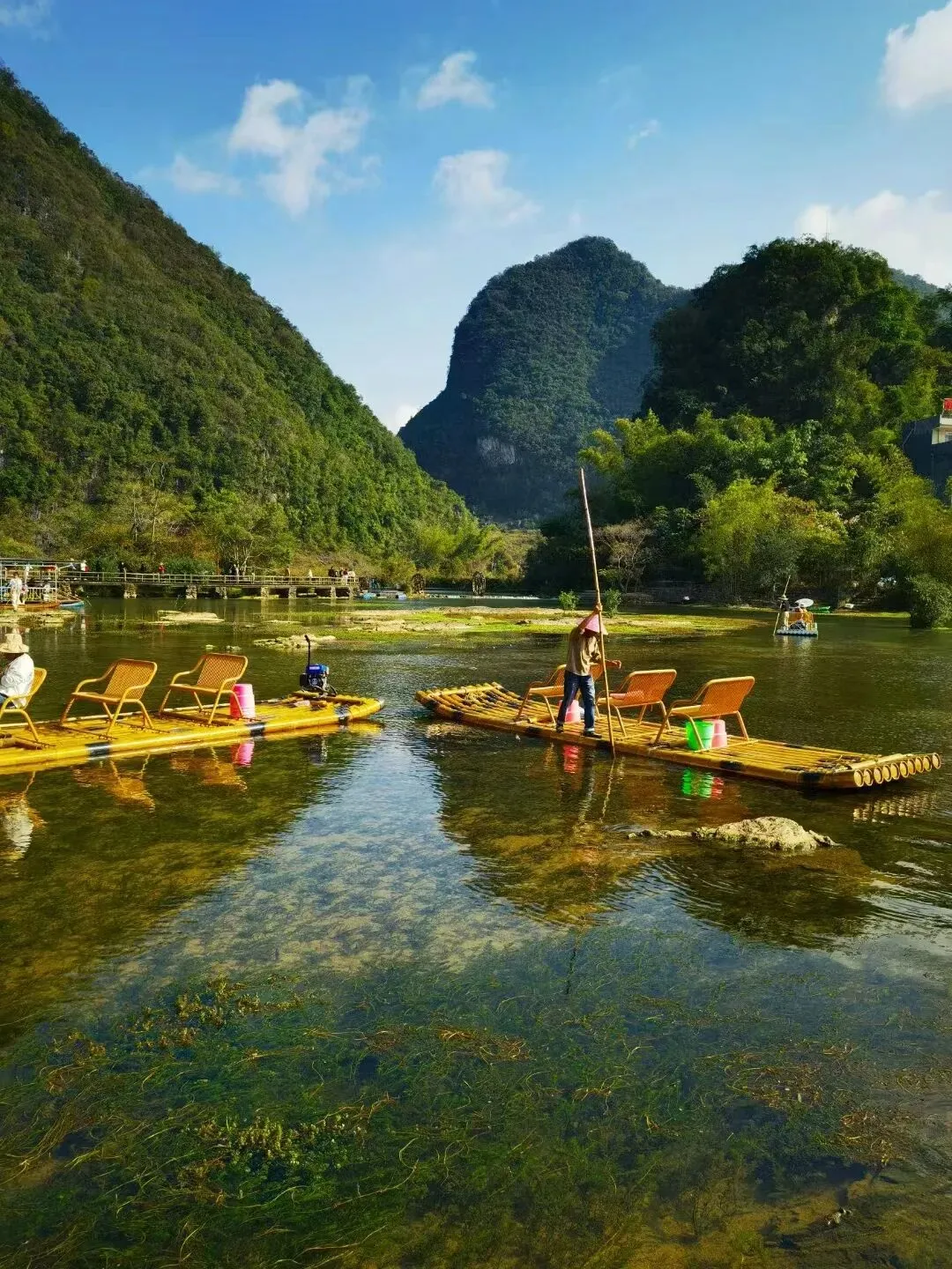 早餐后乘车赴【明仕田园】位于广西壮族自治区崇左市大新县堪圩乡,核心区由峰丛洼地、峰林谷地和盆地等溶岩地貌形态组成,素有"山水画廊""隐者之居""中越边境山水画廊"美誉。【乘竹筏游山水】湖面如镜,倒映着山峦的轮廓,薄雾缭绕,增添了几分神秘与仙气 。竹筏轻轻摇晃,就像在水墨画里漂流,是体验这山水之美的最佳方式。后乘车赴崇左【太平古城】穿越千年的边陲风情。这里没有熙熙攘攘的游客只有古朴的街道、斑驳的城墙和一段段尘封的历史故
