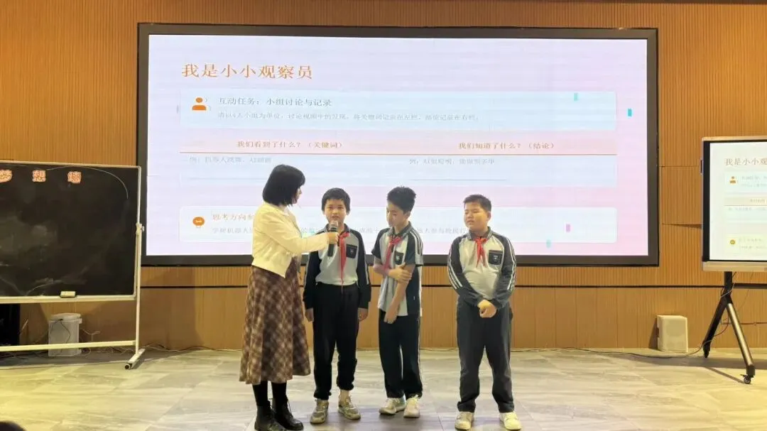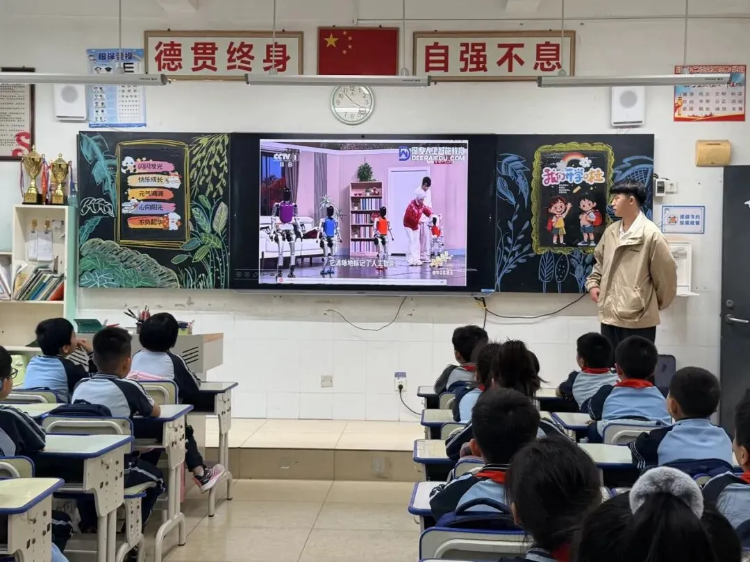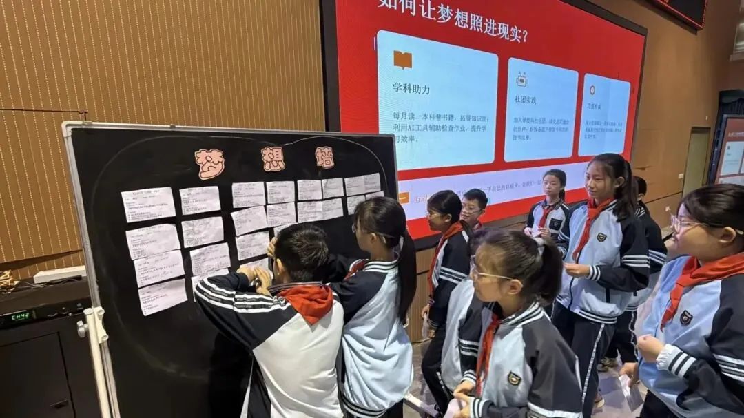 班级里,AI 互动环节点燃探索热情!孩子们围着屏幕与 AI 对话,“怎么制作小机器人”“AI 能帮我们做什么实验”,一个个问题接连抛出,AI 耐心解答后,大家立刻在 “目标卡” 上写下心愿:“和 AI 一起完成科创小发明”“学会用 AI 查资料,解锁智慧福”,贴满 “梦想墙” 的字迹,藏着对 AI 探索的无限期待。