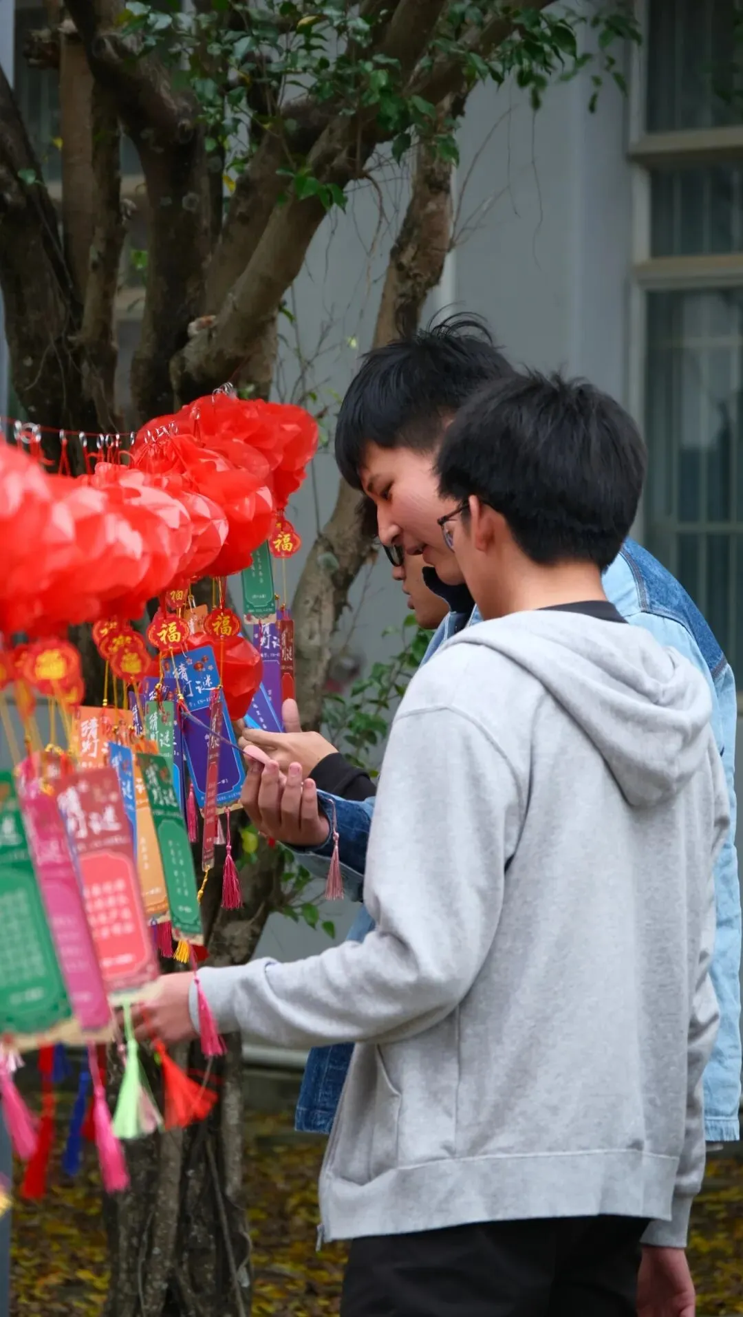 猜灯谜区,谜面穿梭于古今雅韵与世界新知之间,同学们驻足沉思,在字里行间解码智慧;