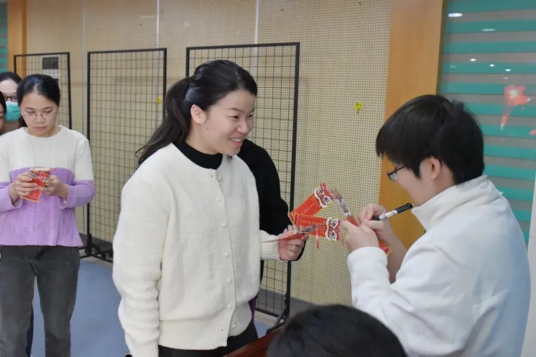 现场悬挂喜庆灯笼及谜面,谜题涵盖医学常识、成语、生活百科等,贴合医务人员日常,兼具趣味与知识性。参与者可自行摘取谜面核对答案,猜对1条即可获得随机小礼品。