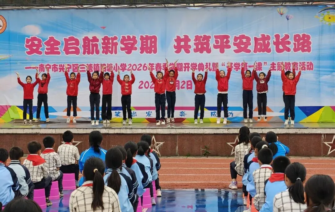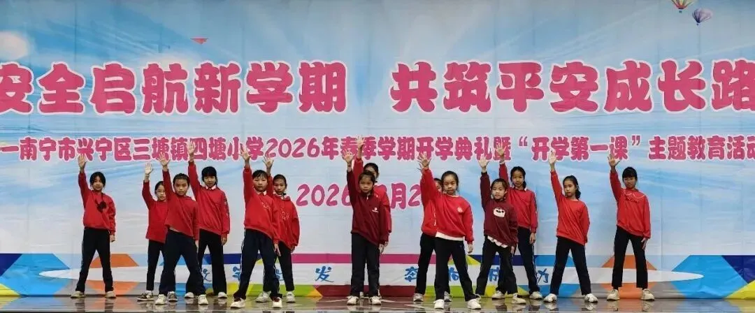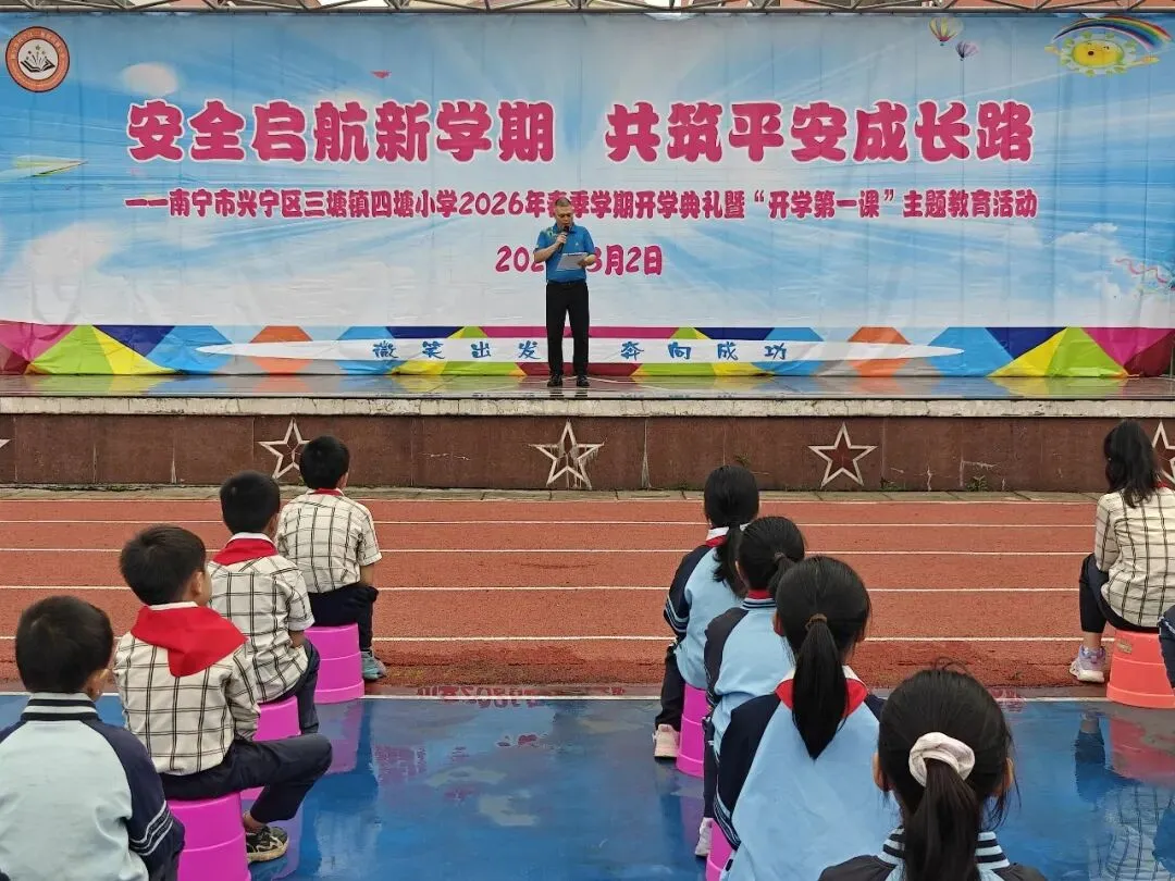 春风送暖,万物勃发。2026年3月2日,南宁市兴宁区三塘镇四塘小学全体师生踏着春的节拍,开展了以《安全启航新学期共筑平安成长路》为主题的开学典礼暨开学第一课主题教育活动,为2026年的逐梦之旅奏响序章,共同开启充满希望的新征程。