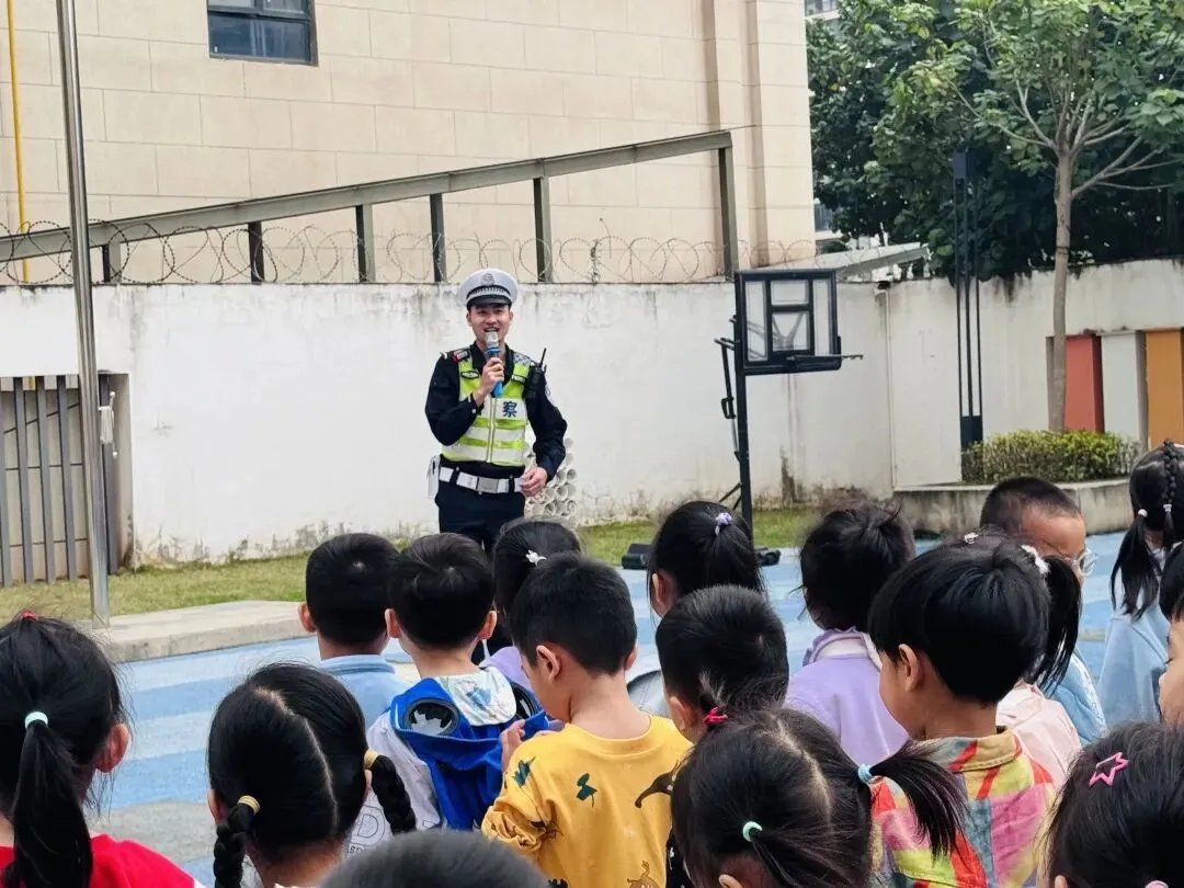 为进一步增强幼儿交通安全意识,提高自我保护能力,开学第一天,夏林路幼儿园特别邀请交警叔叔走进校园,为孩子们带来了一场生动有趣、干货满满的交通安全主题教育活动,面对帅气的交警叔叔,孩子们充满好奇与敬佩,积极举手参与互动,现场气氛热烈又温馨。大家认真倾听、踊跃回答,在心中种下了遵守交通、文明出行的小种子。