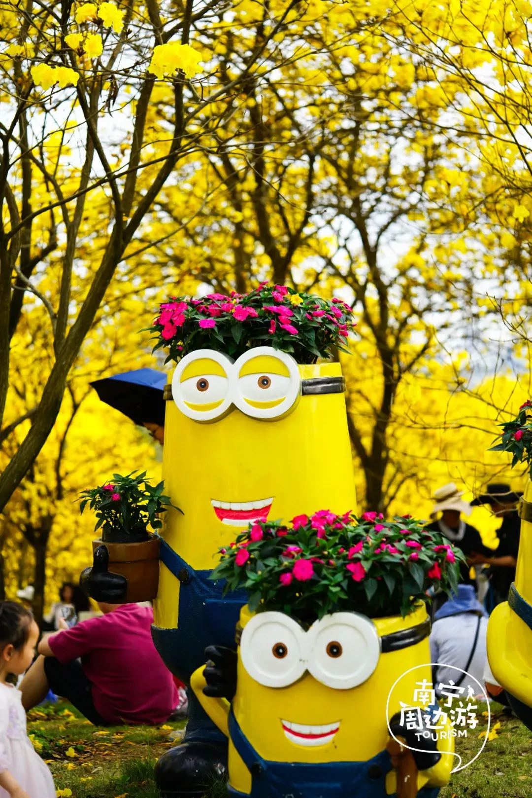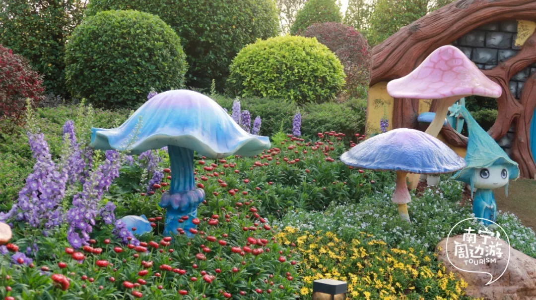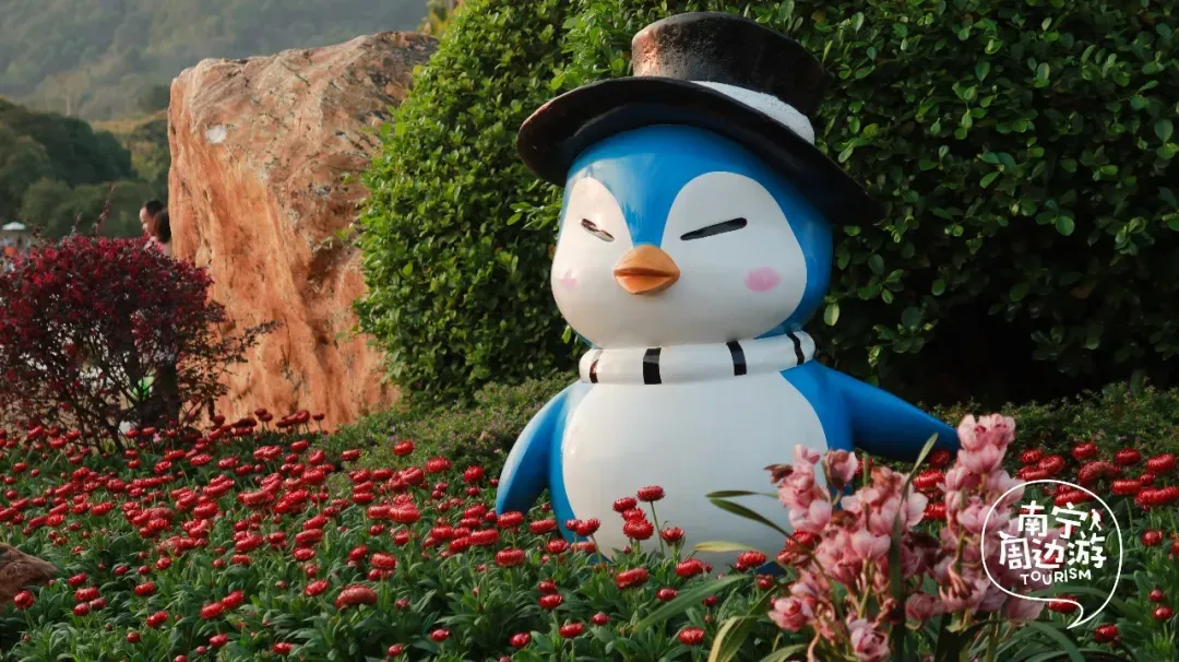 五百亩的规模,上万株的数量,让这里成为了广西乃至全国都罕见的黄花风铃木观赏地,每一次呼吸都仿佛浸润在金色的花香里。这就是南宁青秀山,建议从东门入园往丘石花园方向,步行大约20分钟,沿途可以欣赏到叶子花园的缤纷色彩以及新春灯会的热闹氛围。如果不想步行,也可以直接乘坐景区内的黄色小火车,轻松直达花海区域,沿途还能欣赏到青秀山的其他风光。这里的花海造景非常漂亮,有可爱的企鹅雕塑、色彩斑斓的花卉以及造型别致的小鹿景观。仿佛走进了童话世界,非常适合亲子游玩和少女心打卡。这片金色的海洋,是南宁春日里最耀眼的存在!约上家人朋友,一起去青秀山赴这场金色的春天之约吧。大家如果开车去的话,一定要有心理准备,去晚了的话,停车场全是车,就连马路上都是排长队上几百米!