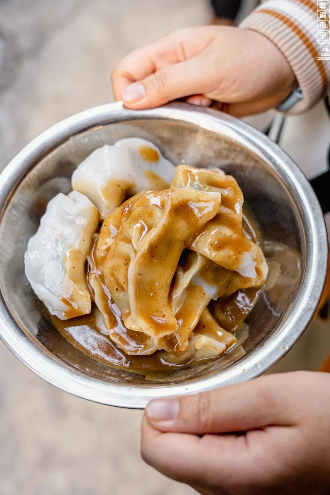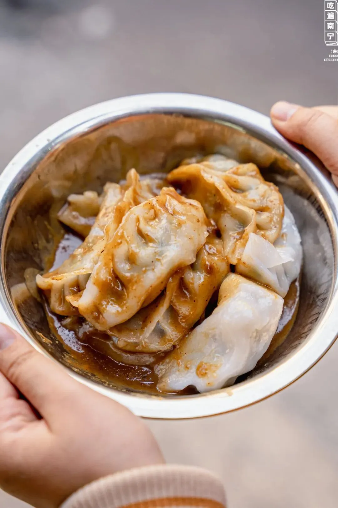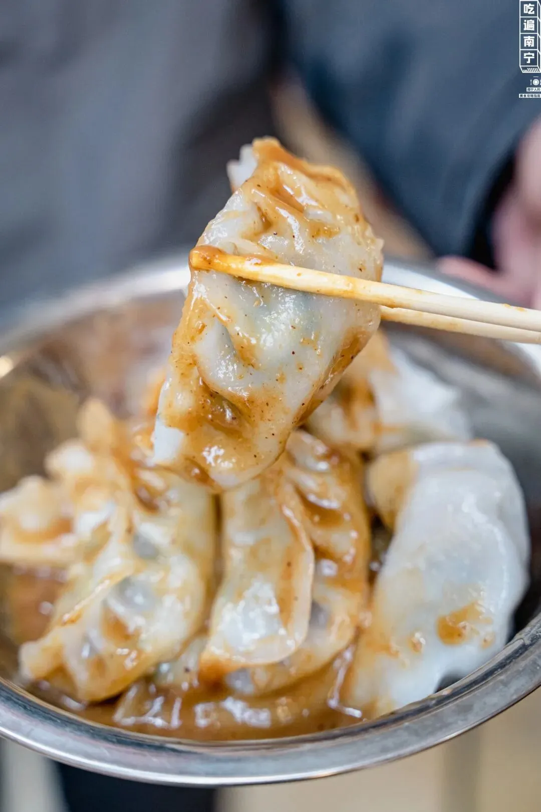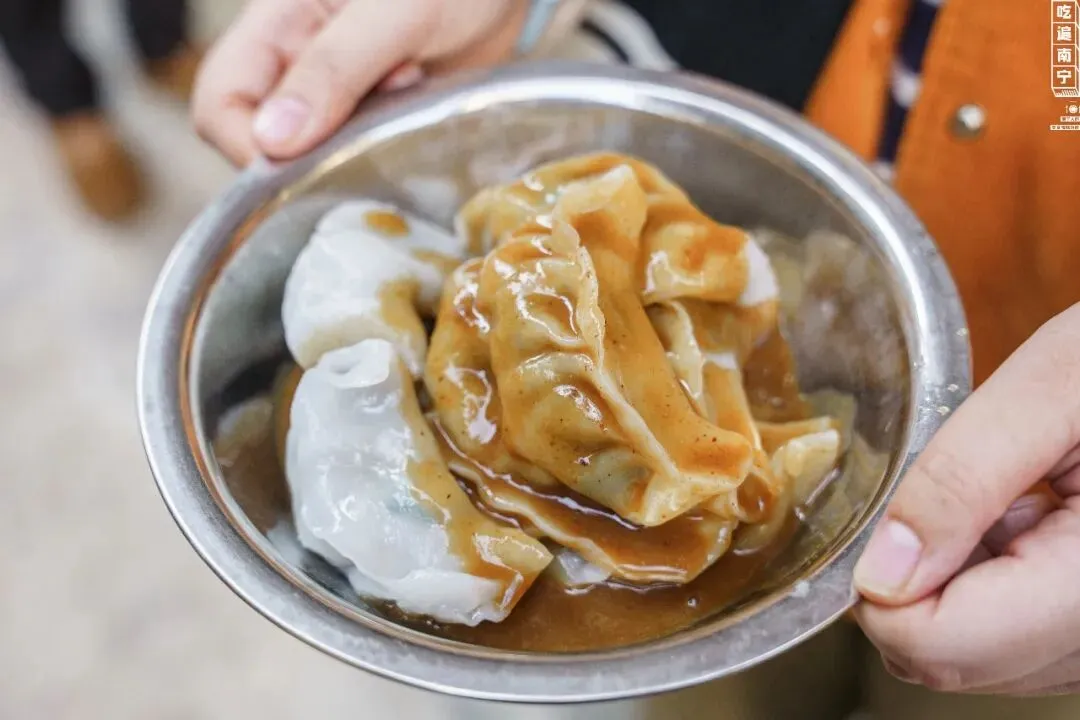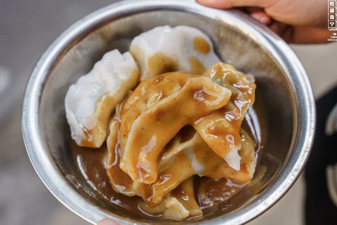一份粉饺,老板加好了黄皮酱,端上来就是这么简单直接。