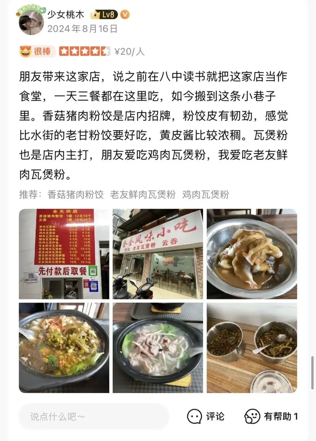 这次她带我去吃了她从读书就开始吃的粉饺,从前的八中学子食堂——奎奎风味小吃店。