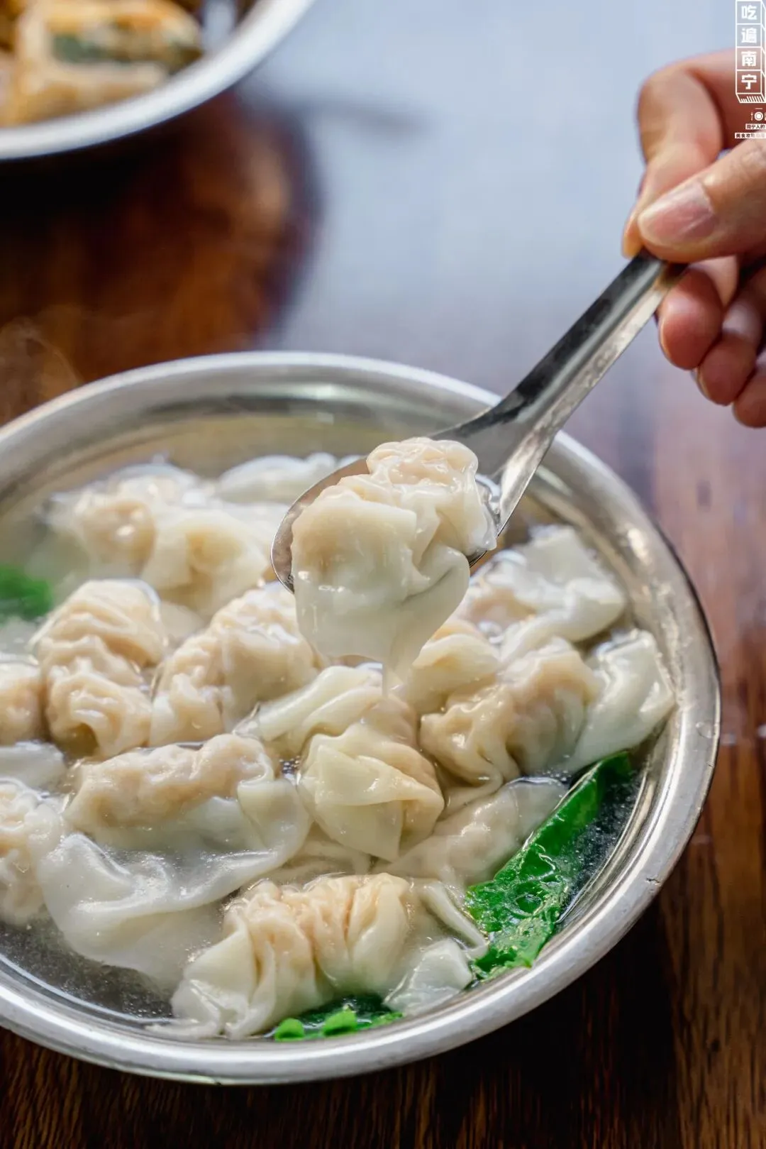 一碗份量十足,薄薄的云吞皮包裹着Q弹的内馅,配着淡淡的清汤也滋味十足。