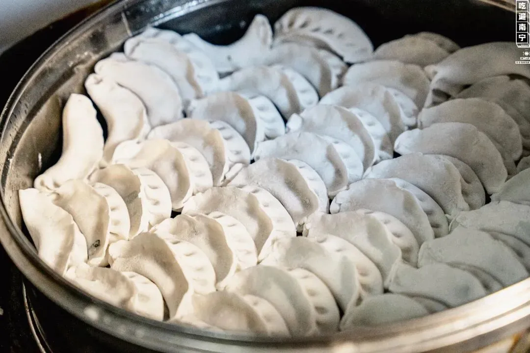 粉饺都是每天现包,粉皮的比例老板拿捏得恰到好处,米香十足的同时又Q弹有韧劲,一个个晶莹剔透。