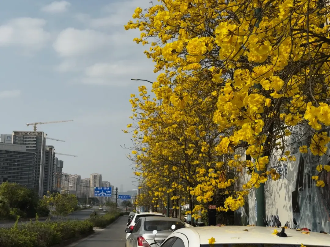 这几天,在暖阳助力下,南宁的黄花风铃木迎来盛花期,吸引不少市民打卡拍照。南宁市气象台预计,3月6日~8日,南宁仍将维持多云到晴的天气,最高气温23~25℃,计划洗晒衣物、春游赏花的市民,可以放心安排。