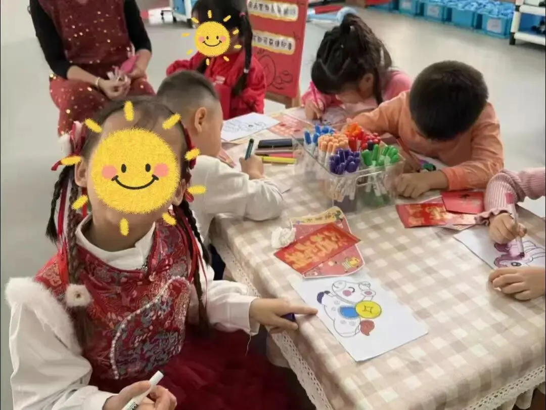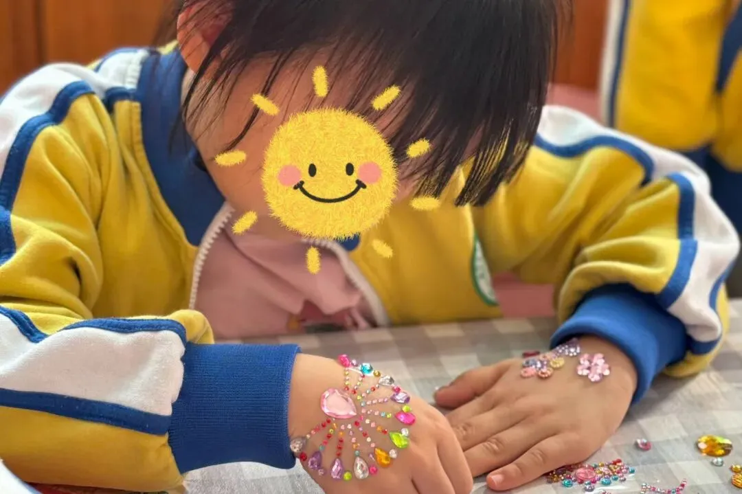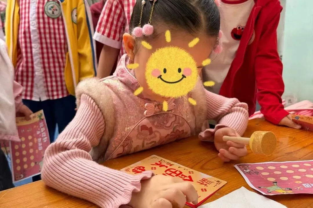 小小美甲师上线,用可爱的贴纸为小伙伴们的指甲点缀出新年的色彩。