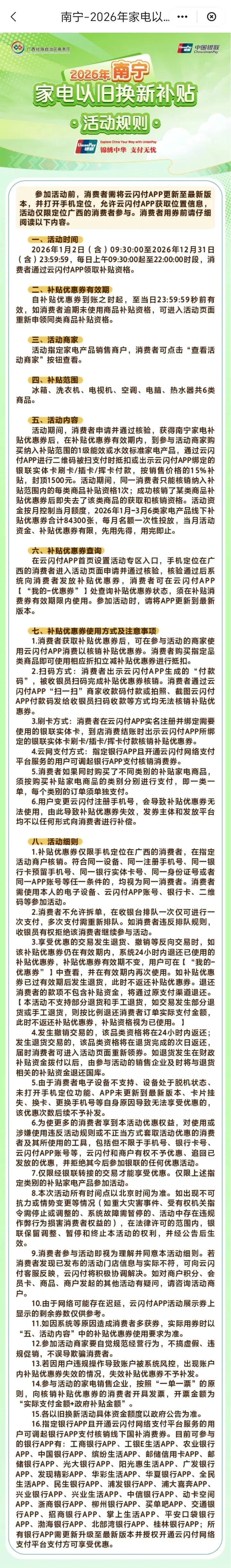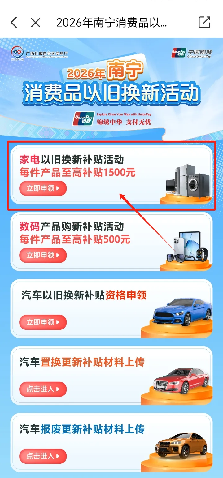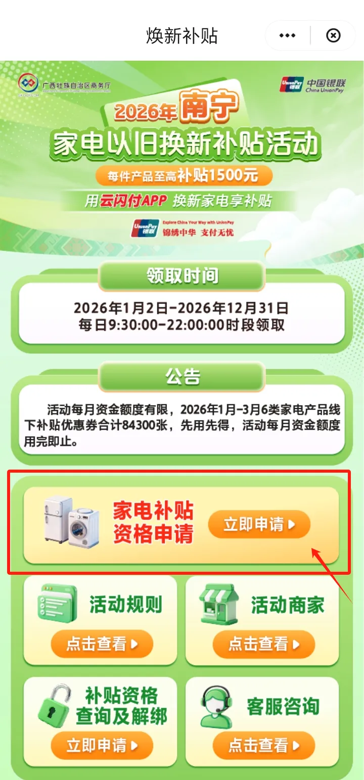 通过《南宁市商务局关于预征选2026年家电以旧换新和3C数码产品购新补贴参与商家的公告》相关流程选定的商家,方可参与本次活动,具体名单见南宁市商务局官网相关公告。