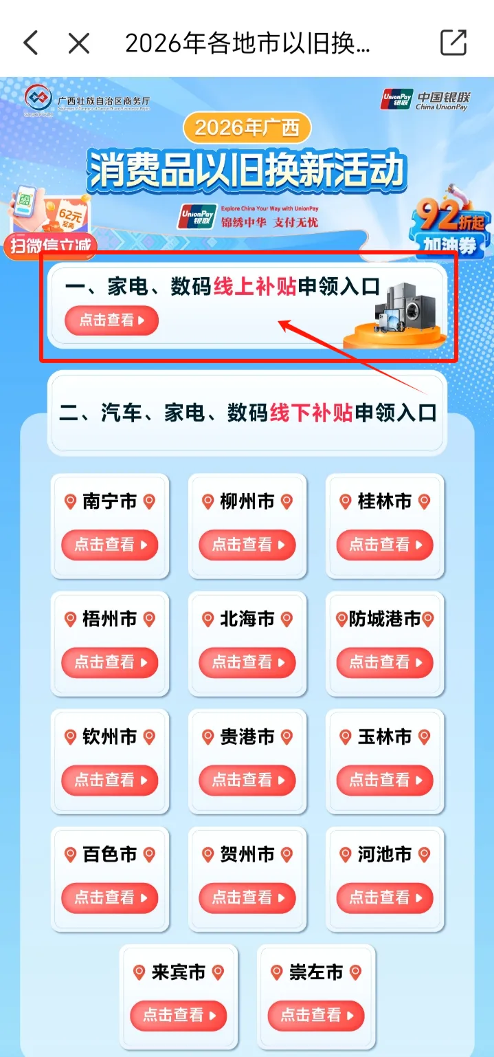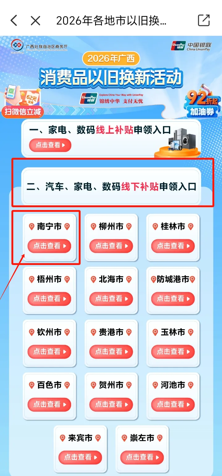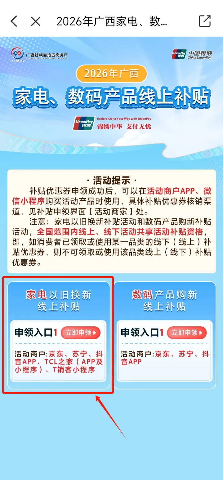 通过《南宁市商务局关于预征选2026年家电以旧换新和3C数码产品购新补贴参与商家的公告》相关流程选定的商家,方可参与本次活动,具体名单见南宁市商务局官网相关公告。