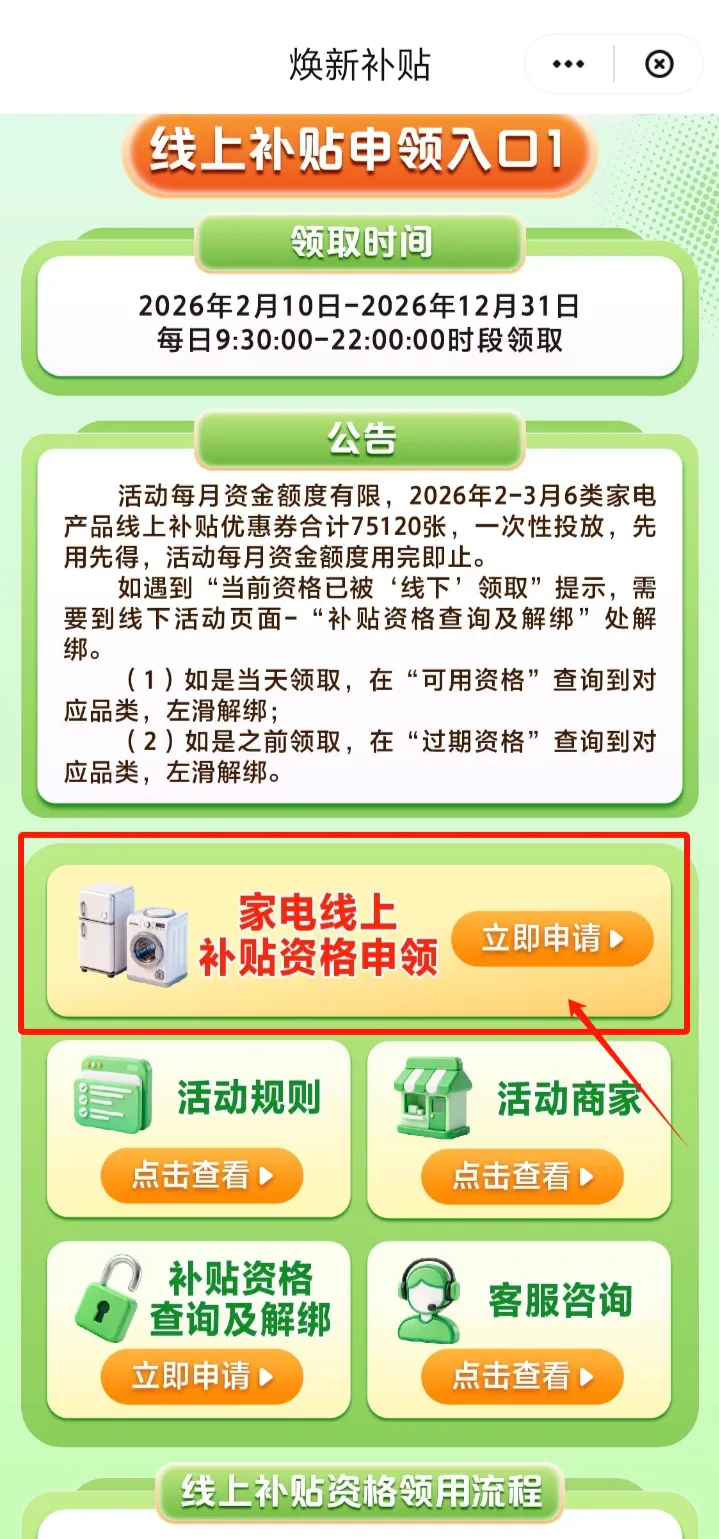 自2026年1月2日至2026年12月31日(因活动资金总额有限,将按月设置资金使用额度。当月额度用尽,则活动自动暂停,次月恢复开放)。