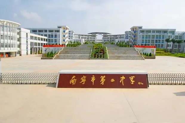 南宁市第二中学是南宁市教育局直属完全中学,中国百强中学,广西自治区首批重点中学,自治区首批示范性普通高中。现有高中部(凤岭校区)、初中部(新民校区)、初中部(青运校区)、国际部,其高中部占地达453亩,依山形地势而建,错落有致,绿树成荫,鸟语花香;人与自然和谐共处。