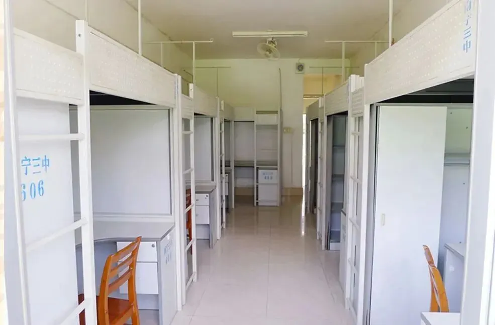 学校实行全内宿制管理;宿舍安装有2台风扇及1台空调,2间独立卫生间,一个阳台。