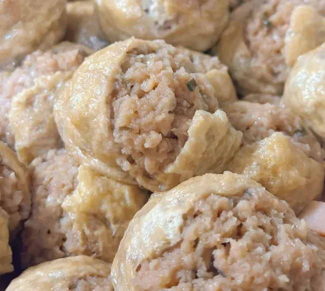 这菜看着简单,其实费功夫。把半肥瘦的猪肉剁碎,拌上香菇马蹄,耐心地塞进莲藕的孔洞里。先煎后焖,咬下去"咔嚓"一声,藕的脆劲裹着肉的鲜汁,在嘴里炸开,口感层次极丰富,既解馋又不腻。