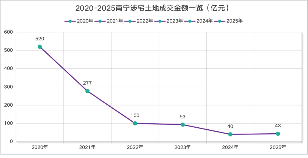 ▲2020-2025南宁涉宅土地成交金额(仅供参考)
