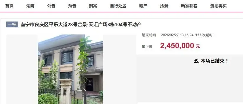 近日,在南宁市司法拍卖市场上,又迎来了一宗非常抢手的房产拍卖,一宗位于南宁市良庆区平乐大道28号合景·天汇广场8栋104号不动产被拍卖。此次拍卖的是一栋小别墅,属于联排别墅,不是独栋或者双拼别墅,别墅建筑面积只有183.08平方米,虽然别墅建筑面积不是很大,但是带有一个面积不小的私家花园。目前别墅还是毛坯房,没有人装修入住过,但是别墅内放置了不少杂物。截止2025年10月24日物业欠费5588.40元,该费用由买受人承担。