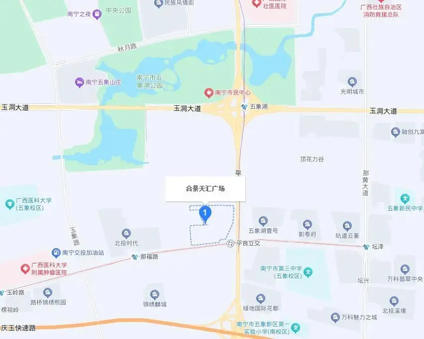 此次拍卖的别墅所在小区合景天汇广场,位于南宁市五象新区优质地段,五象湖公园南部,就在平良立交地铁站的旁边,平良立交地铁站是南宁市地铁2号和3号线换成站,经两条地铁可以直达南宁市多个地方,而且南边距离庆玉快速路也是非常近,交通便捷。小区周边配套完善,商业有南宁五象万象汇;学校有滨湖路小学(五象校区)、南宁市良庆区第四实验幼儿园、南宁市良庆区新平路幼儿园、南宁市第三中学(五象校区)等。