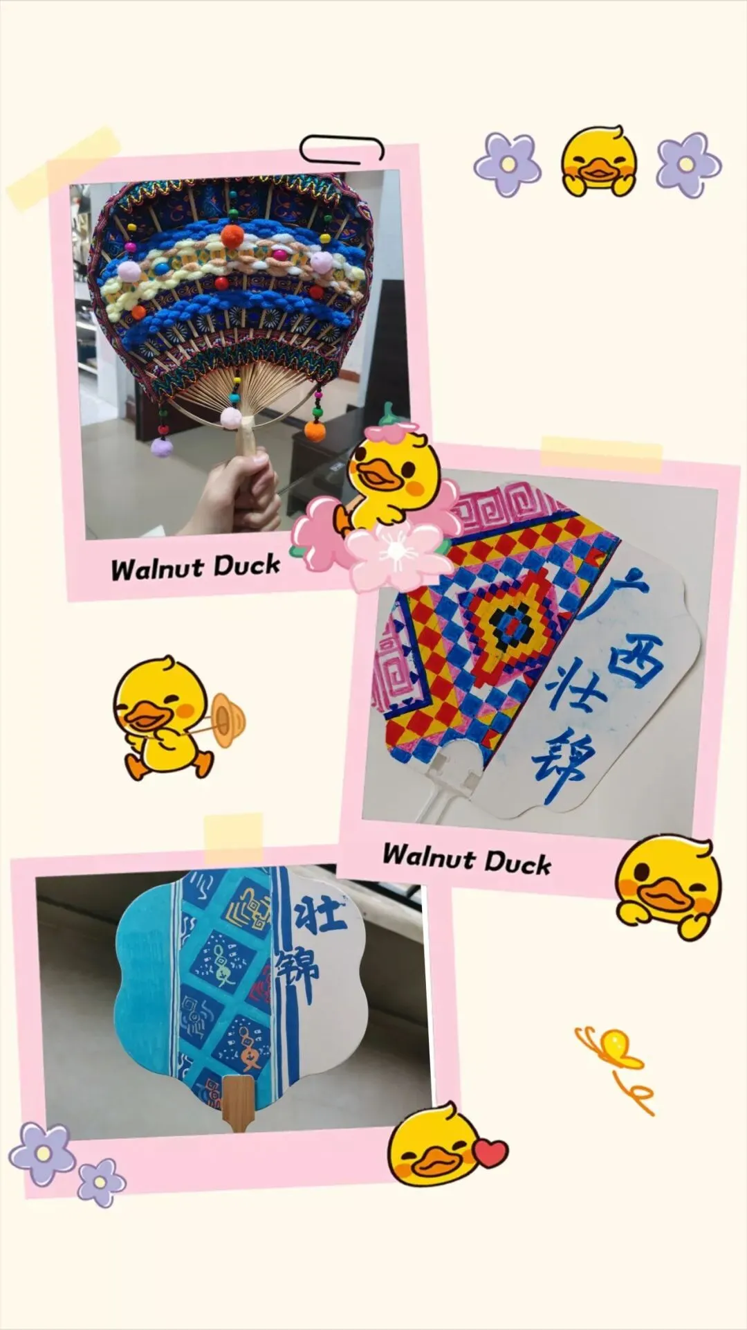 一把扇面,一方天地。同学们以壮锦为灵感,在扇面上勾勒民族文化的瑰丽图景,用画笔赋予传统纹样新的生命力,让艺术创作成为文化传承的桥梁,也让更多人看见壮乡之美。