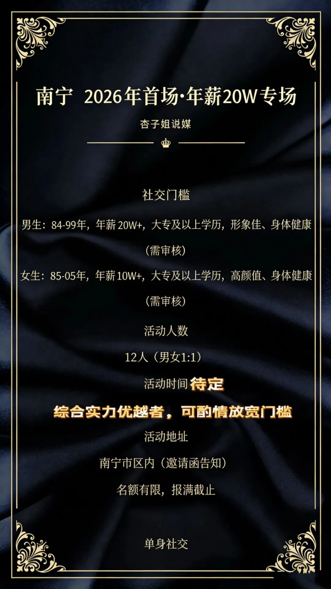 我们举办的高品质相亲活动,旨在为城市中的优秀单身青年提供高效、真诚的相识平台。参与者均经过严格的学历、工作和形象把关,确保了基本条件的匹配与婚恋意愿的真诚。