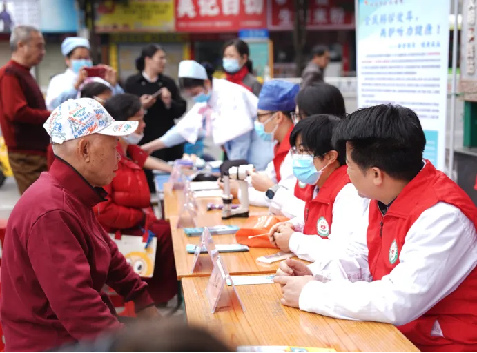 本次爱耳日的主题为“全民科学爱耳,共护听力健康——安全用耳,健康成长”。活动现场,耳鼻喉科专家免费为社区居民提供电耳镜检查、初步听力筛查、血压测量等医疗服务,并耐心解答市民关于听力下降、耳鸣、耳聋预防及治疗等方面的咨询。志愿者围绕听力保护、耳部疾病预防、科学用耳常识等内容开展科普宣教,引导市民树立科学的爱耳护耳意识,远离听力损伤。同时,眼科、内科、外科、皮肤科等科室专家现场坐诊,为市民提供专业健康咨询、疾病筛查及健康指导服务。