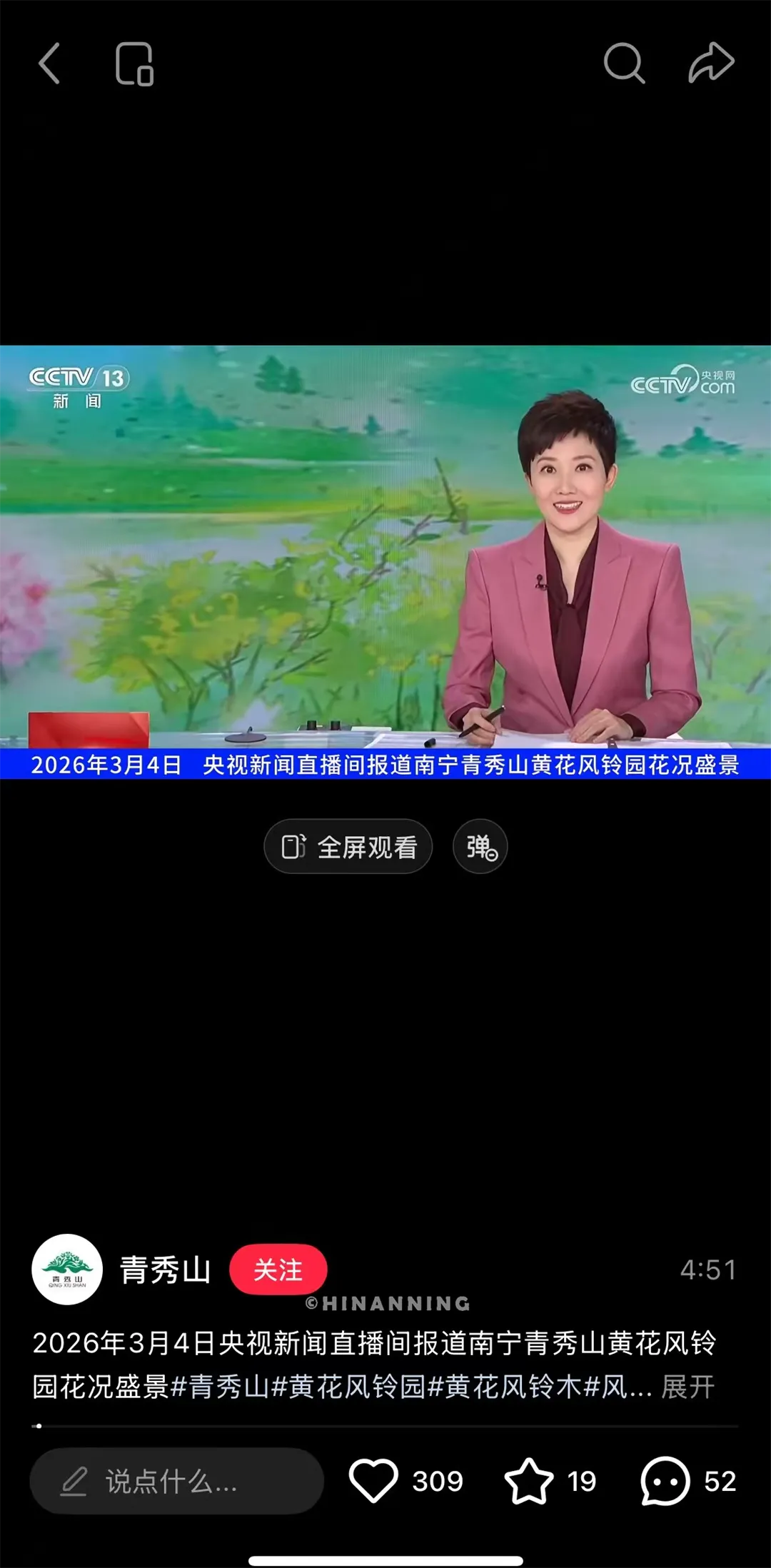 这次可不是什么稀奇古怪的事,而是凭借那如诗如画的春季繁花盛景,美得又双叒叕登上央视大舞台,引得区内外游客纷纷化身“自来水”,口口相传、赞不绝口。捏,我小南宁这是妥妥走上了“偶像派”的路线呀~