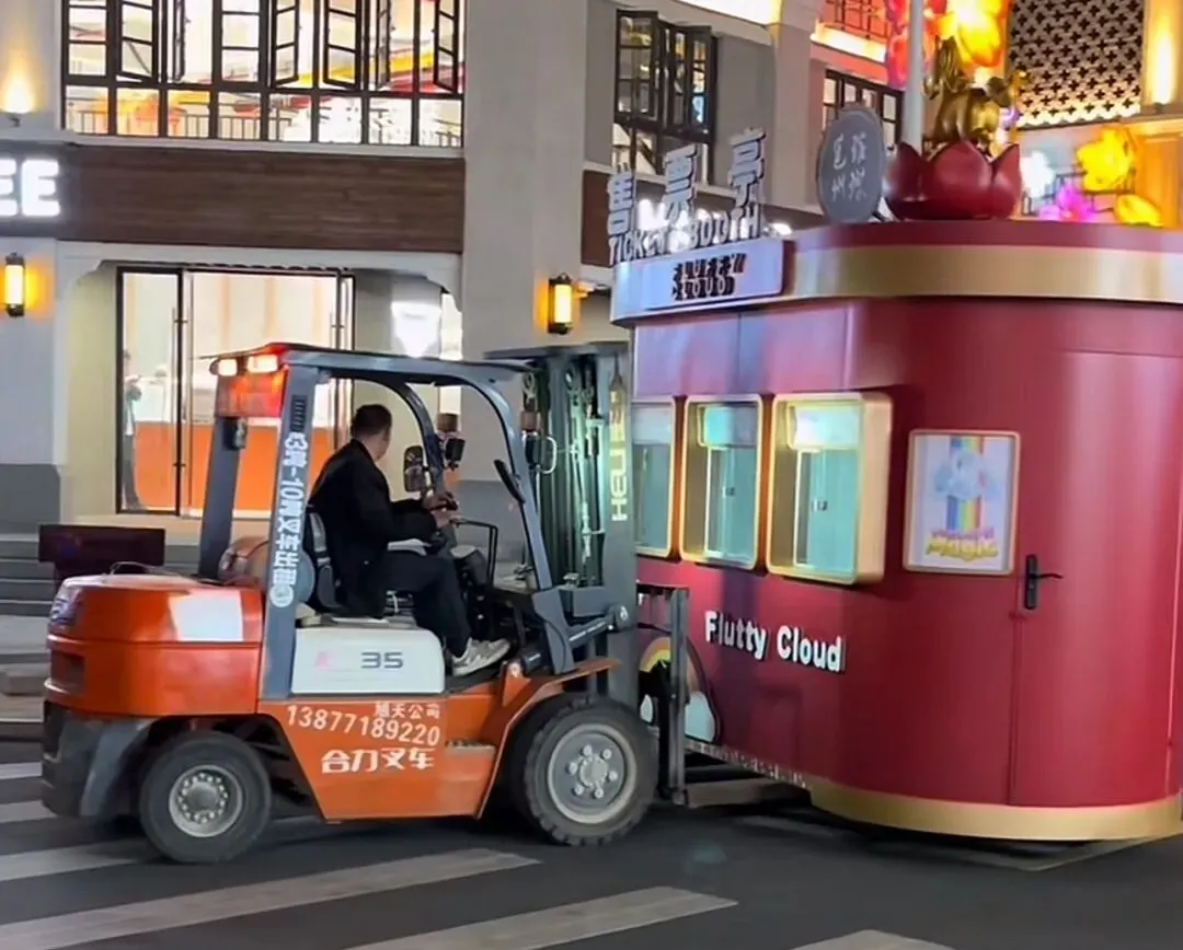师傅正在搬走售票厅,人流量最多的几天把客人挡外边,真是神人。