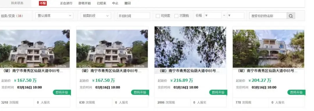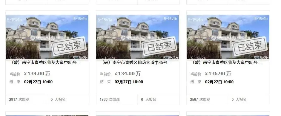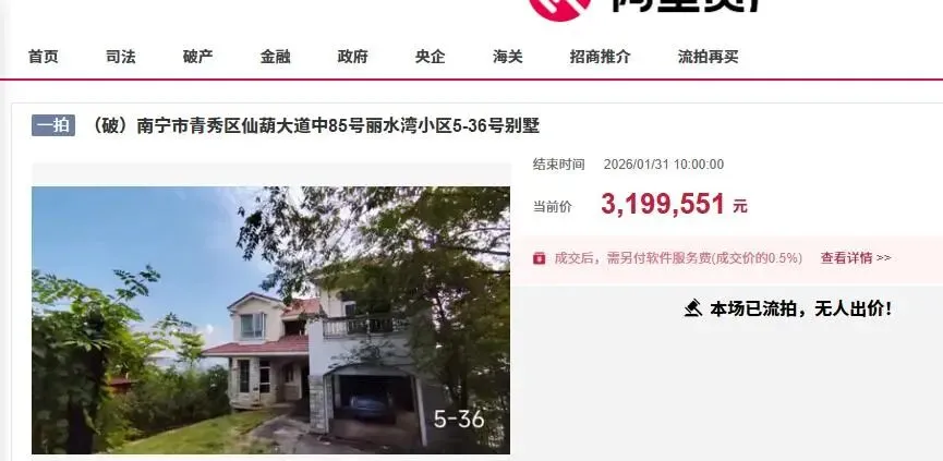 所以,这里的别墅,即使是一线江景独栋别墅,其价格都是要比南宁市中心的联排双拼别墅价格都要低。而实际上,在2月27日,这个丽水湾小区还有另外三栋别墅也是因为开发商破产而被拍卖,别墅为双拼别墅,建筑大概261平方米,结果第二次降价拍卖,才134万元起都还是流拍。